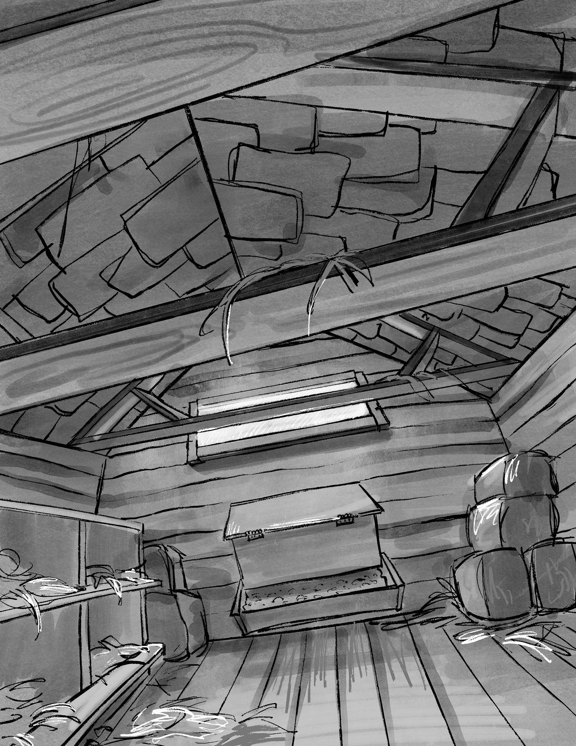 I reimagined the environments in a simpler style that matched the characters. I used the same brushes in all illustrations, which resulted in consistent rendering and linework.