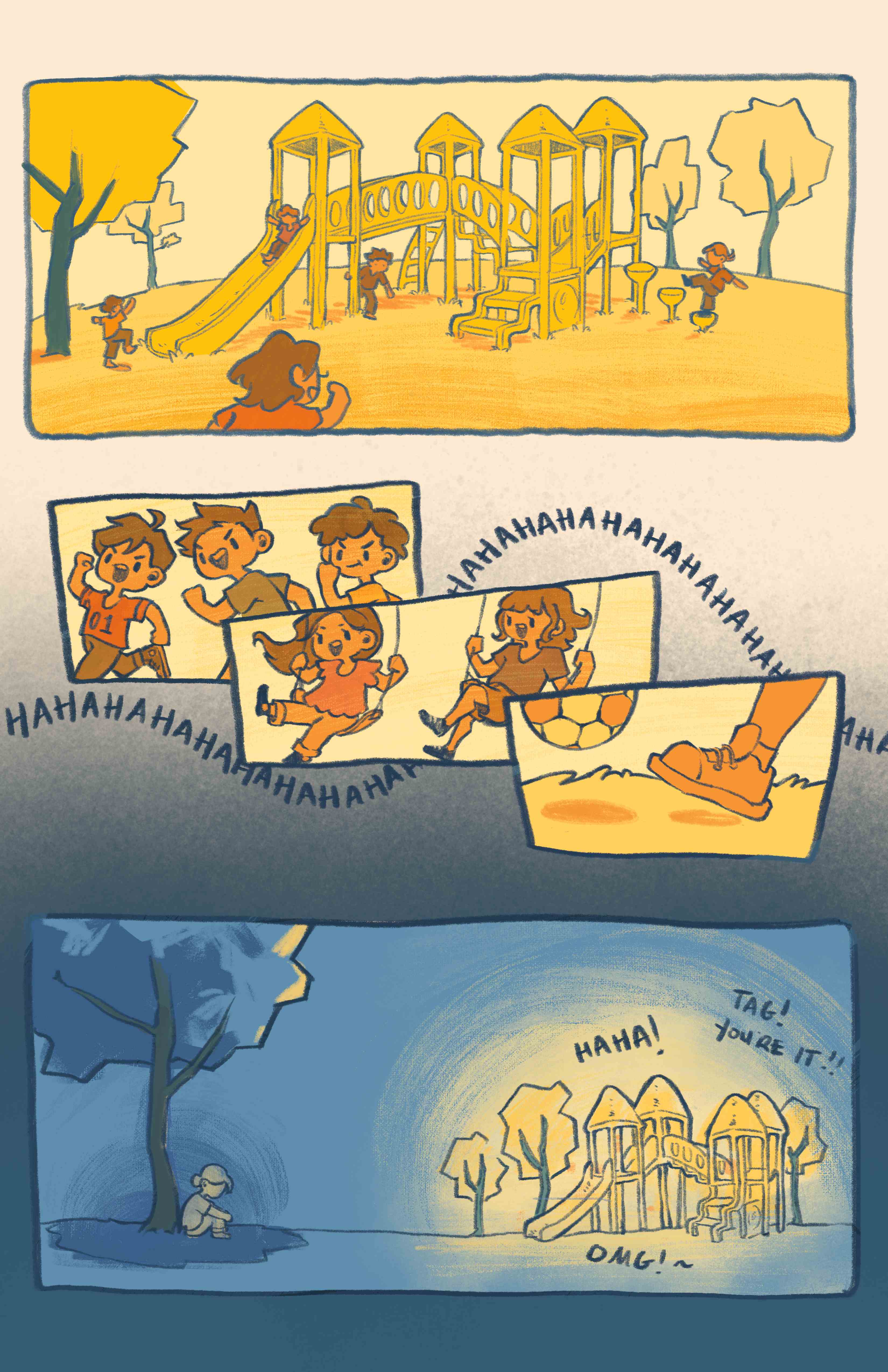 The challenges came in depicting mood and feeling, creating clever and readable paneling that kept readers engaged, and showing shifts in environment without unexpected transitions. Every panel needed to serve the story while maintaining the sense of childlike wonder.