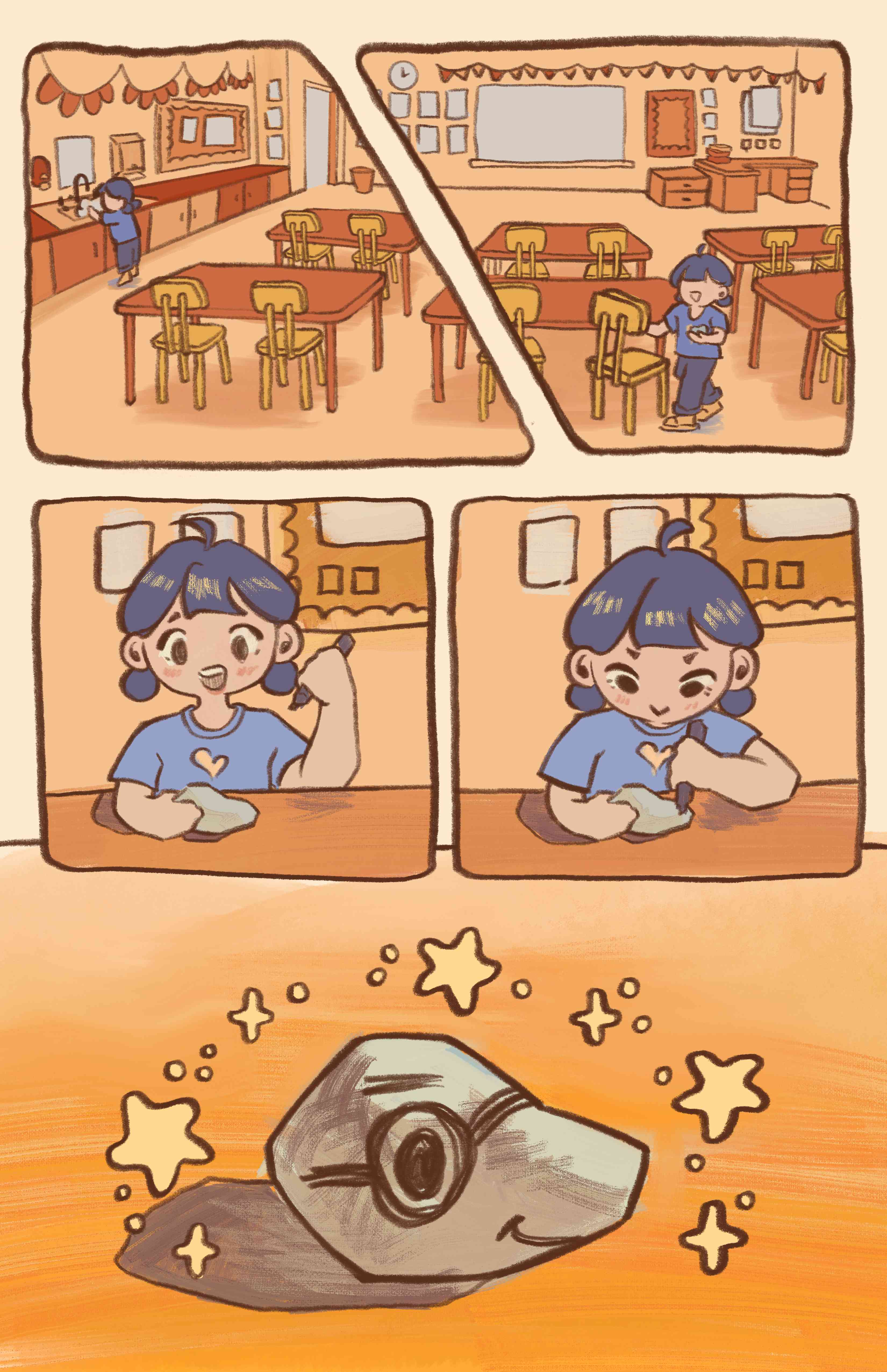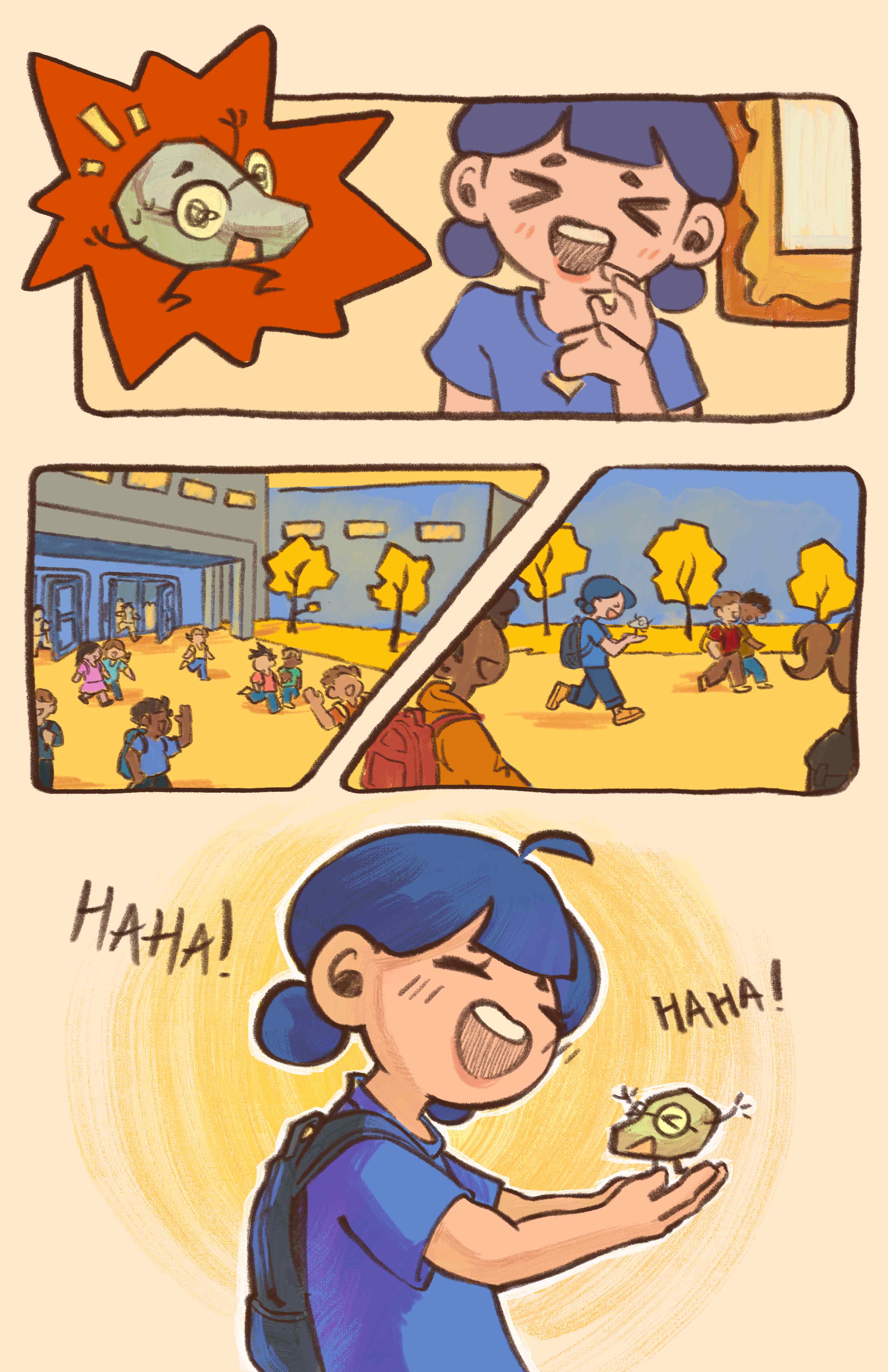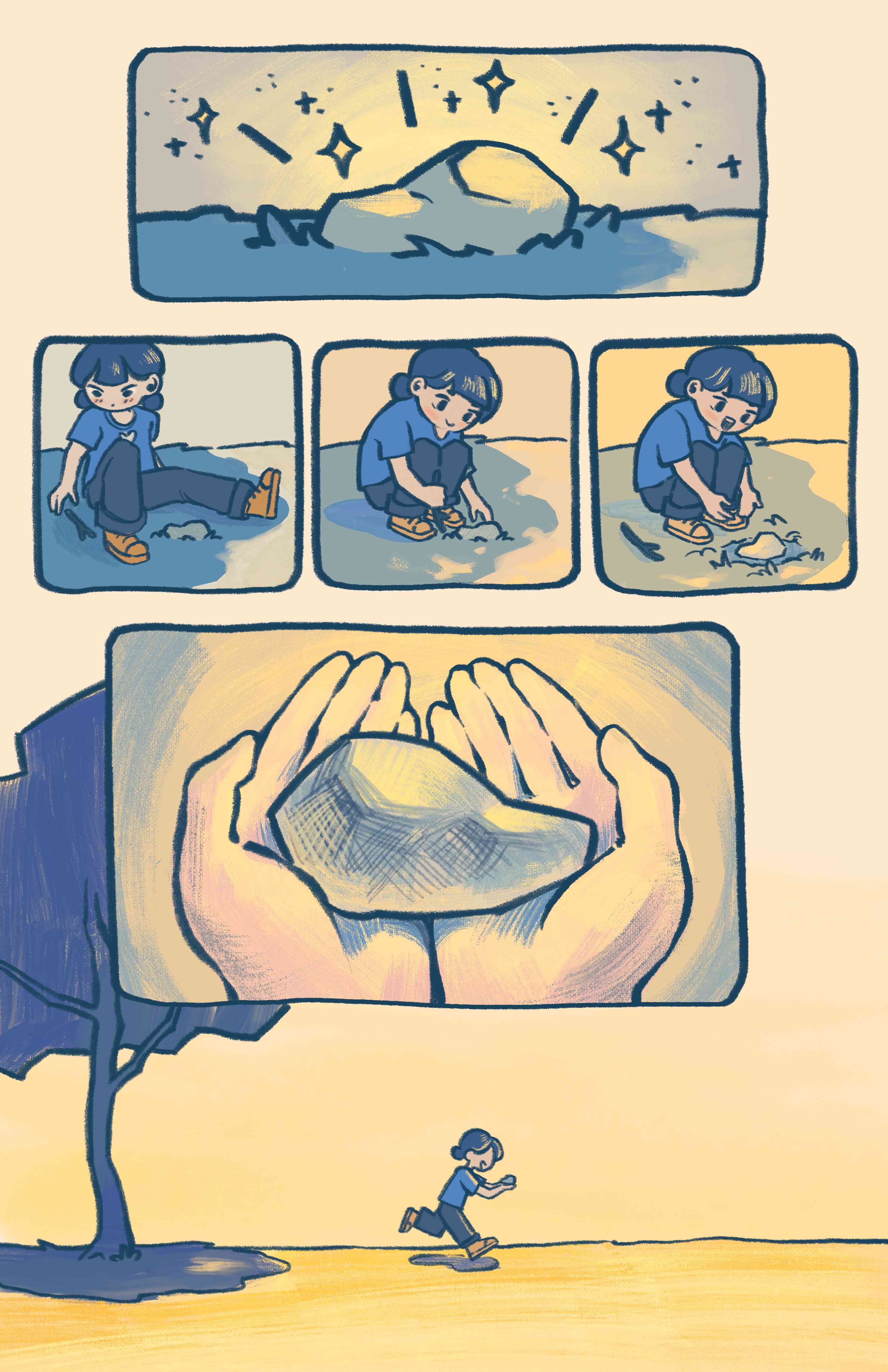 A six-page comic that brings childhood wonder to life. This story is based on a personal memory in elementary school, finding a rock and naming it Rocky. The comic exaggerates reality to capture the limitless imagination kids have, where an ordinary rock becomes something magical.