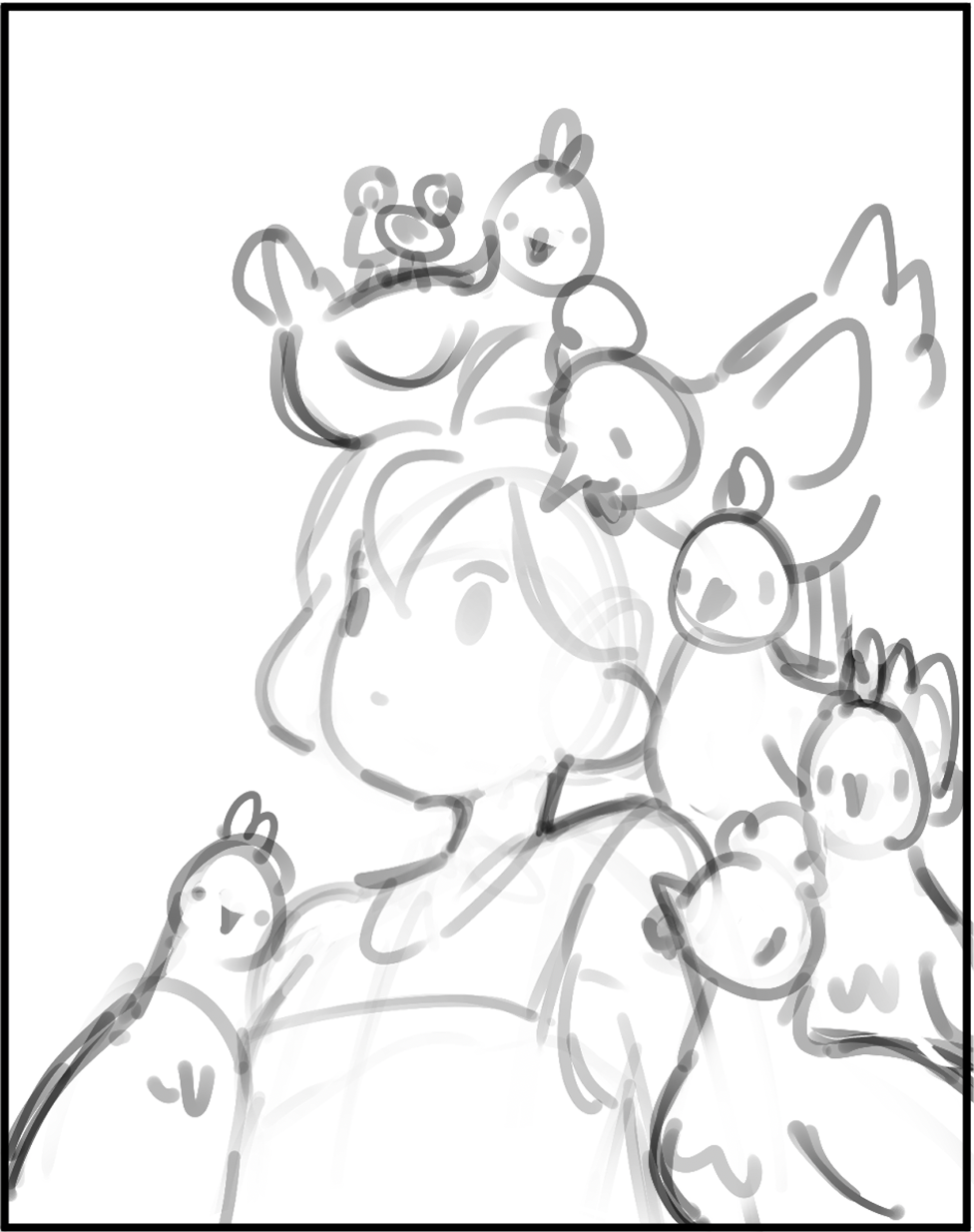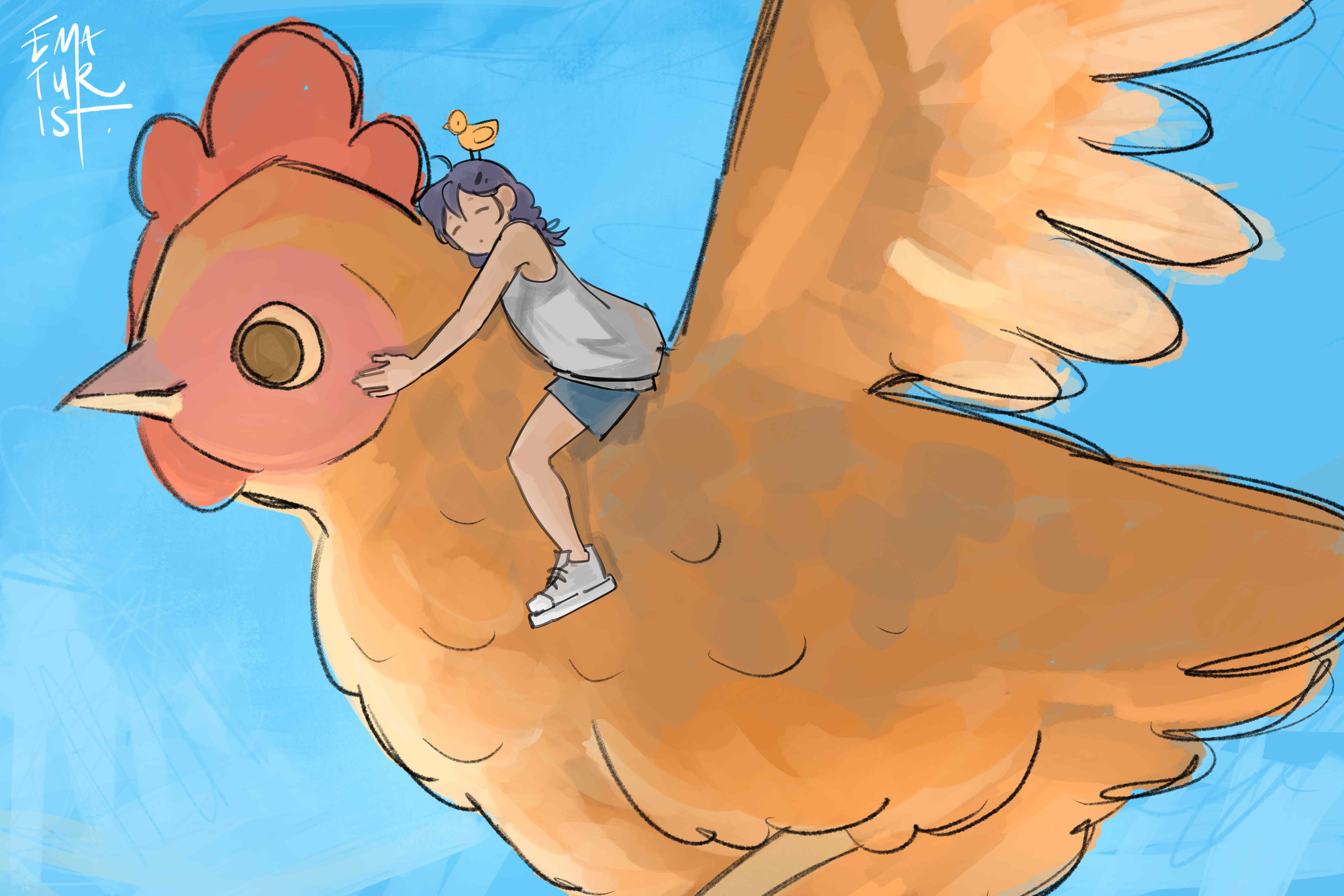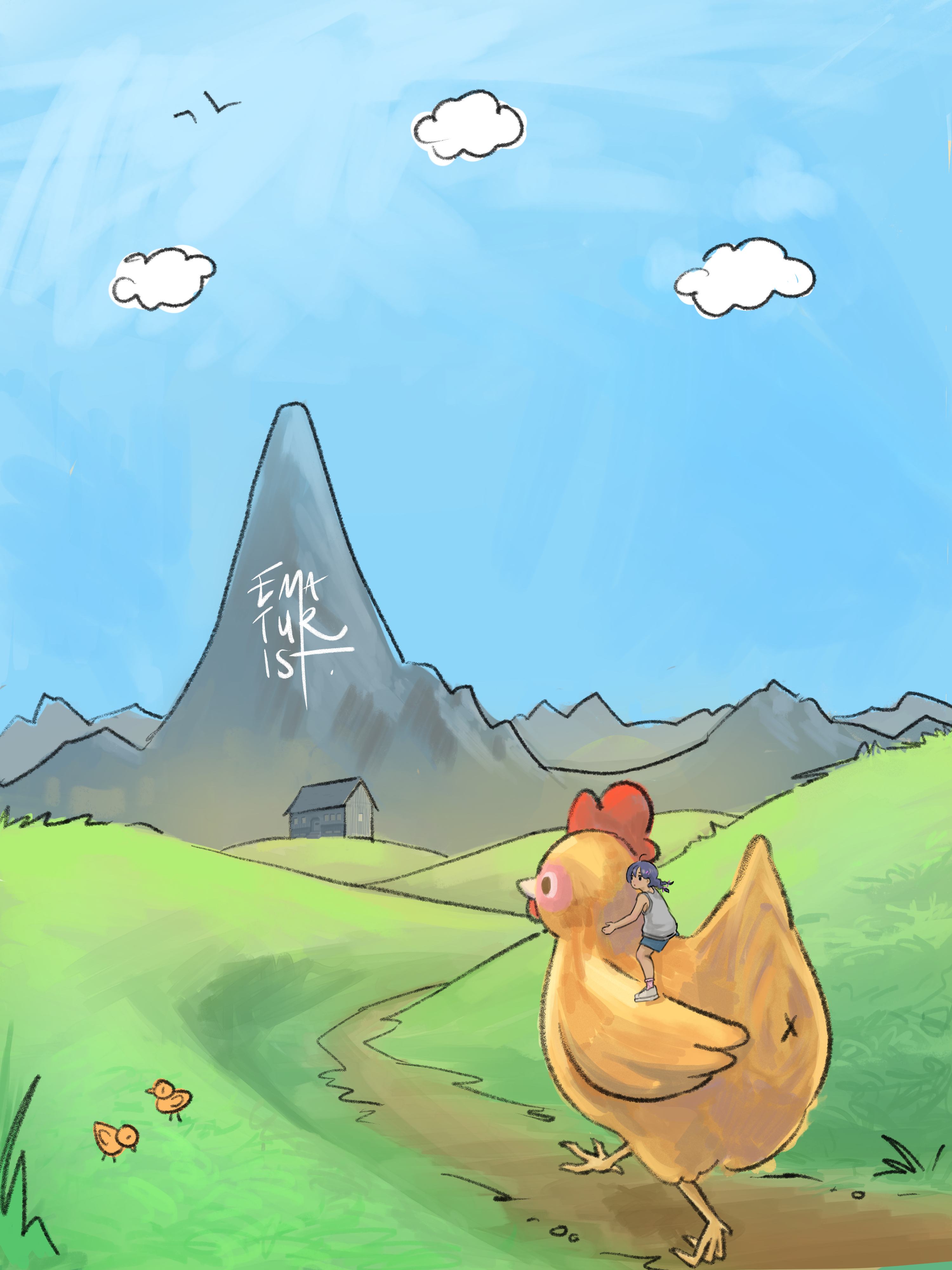 I started by researching artwork and pulling specific characteristics I loved. Then built a detailed character sheet with consistent features. Series 01 introduced the character through minimal compositions focusing purely on her design from different angles. Series 02 /"Bok-Bok" brought childhood joy to life through six sequential illustrations, exploring memories with my backyard chickens.